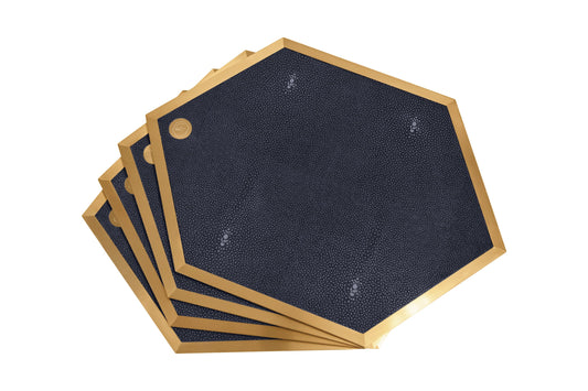 Placemat Hexagonal - Midnight Blue Collection - Shagreen / Brass - Set Of 4