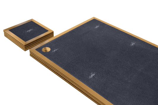Placemat Rectangular - Midnight Blue Collection - Shagreen / Brass - Set Of 4