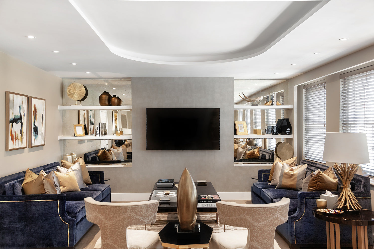 Luxury Mayfair Boutique Office - 2 Offices, Concealed Kitchen, 2 Bathrooms, Open Plan Living & Meeting Space. Bold Colours Of Blue With Brass Accents Throughout.